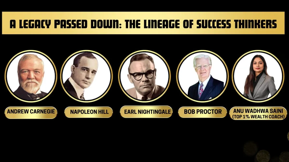 For generations, the world has been inspired by the teachings of visionary leaders like Andrew Carnegie, Napoleon Hill, Earl Nightingale, and Bob Proctor. Their insights have laid the foundation for personal and financial empowerment. Today, as a top 1% wealth coach, Anu Wadhwa Saini continues this legacy, guiding entrepreneurs and business owners towards achieving unprecedented success and freedom.